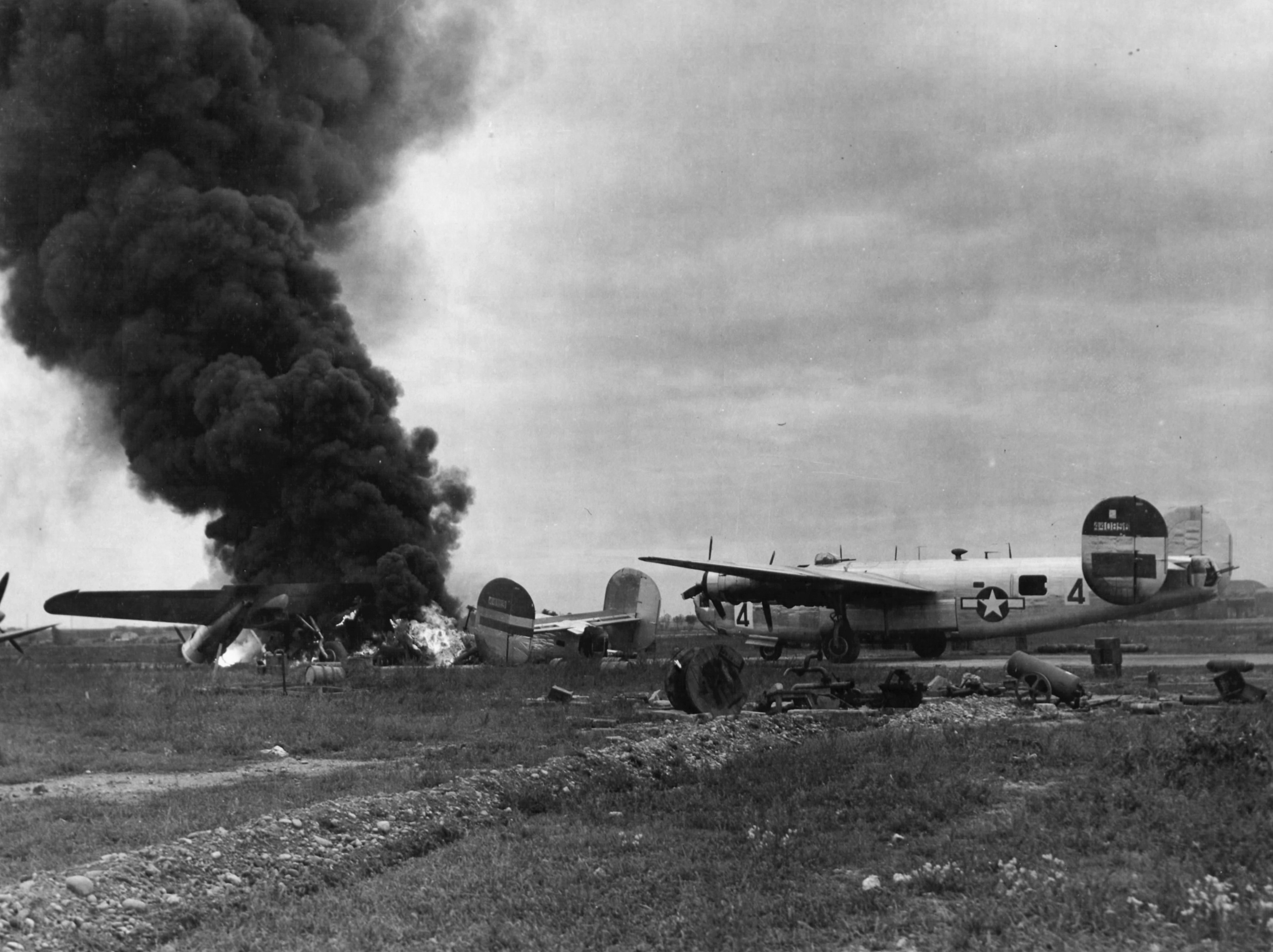 Crash landed at Torretta 25 July 1944 returning damaged after mission to Linz, Austria. See Losses.