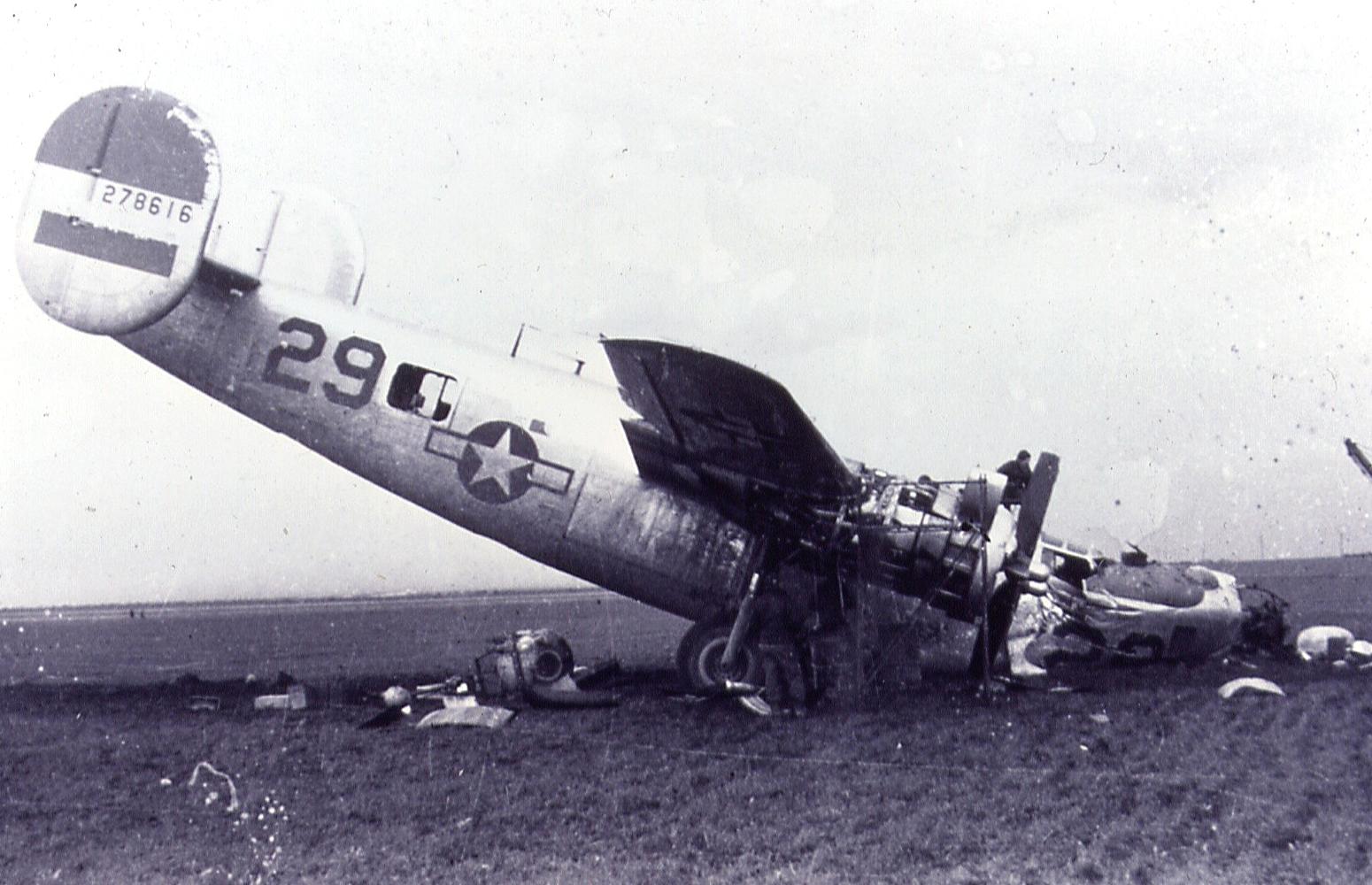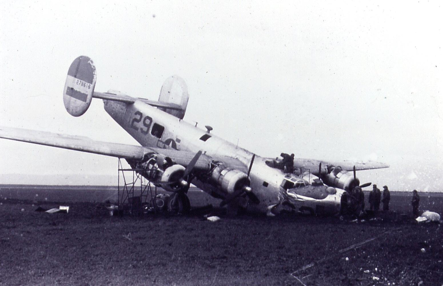 For obvious reasons, I don't have this aircraft listed in the 765th Nose Art page. I have yet to see a picture of it's nose in an undamaged condition. I thought it would be good to at least post these pictures though. The pilot at the time these pictures were taken was McMillen of the 765th Squadron. According to documentation, McMillen ran out of fuel while returning from the mission on 20 January 1945. Thanks to Stan Staples for these pictures.