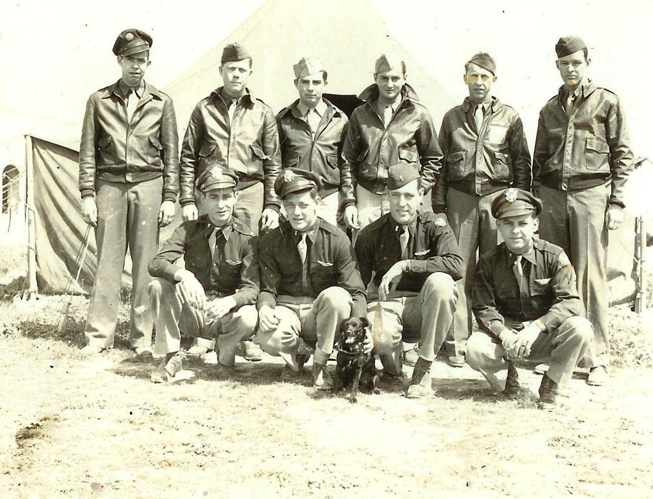 ![]() Crew #65 Standing L-R: McKinney, Seth (E); Hudson, Hoyette S. (TG); Moreau, Norbert I. (BG) [KIA]; Brown, Teddy (RO); Graden, Leonard A. (NG); McPeck, George I. (G) Kneeling L-R: Torres, Mattias M. (P); Cash, Leonard P. (CP); Blackie (Mascot); Thorne, Robert F. (N); Lima, John B. (B) |